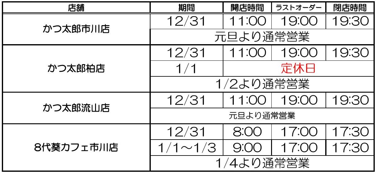 年末年始の営業時間に関しまして、下記の通り変更させて頂きます。