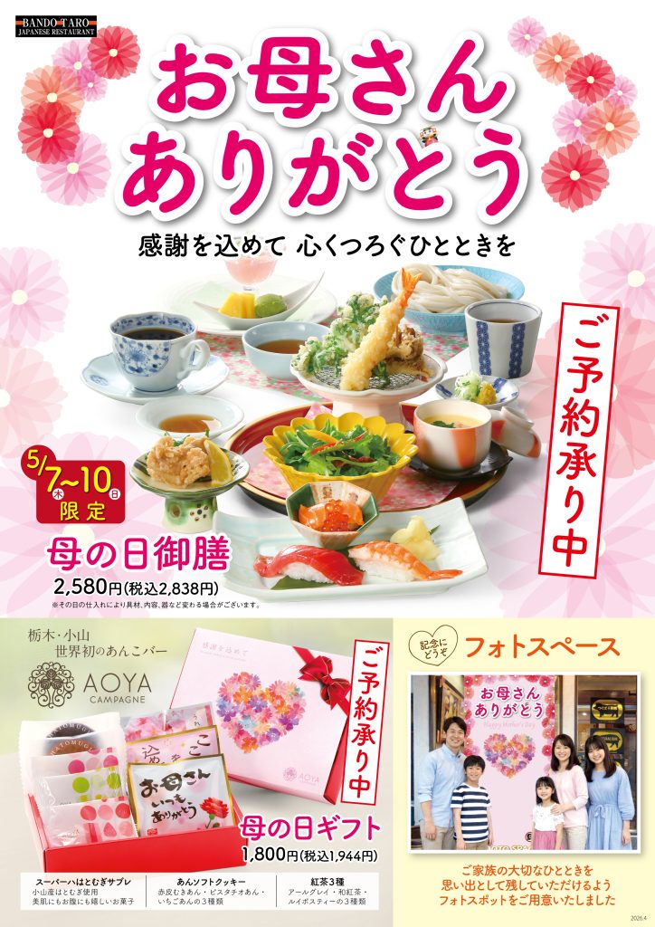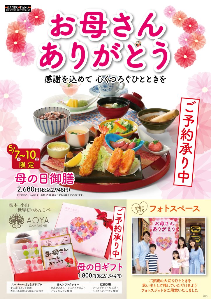 5/7 - 5/10の期間中「ばんどう太郎」「家族レストラン坂東太郎」「かつ太郎」の業態でご注文頂けます。