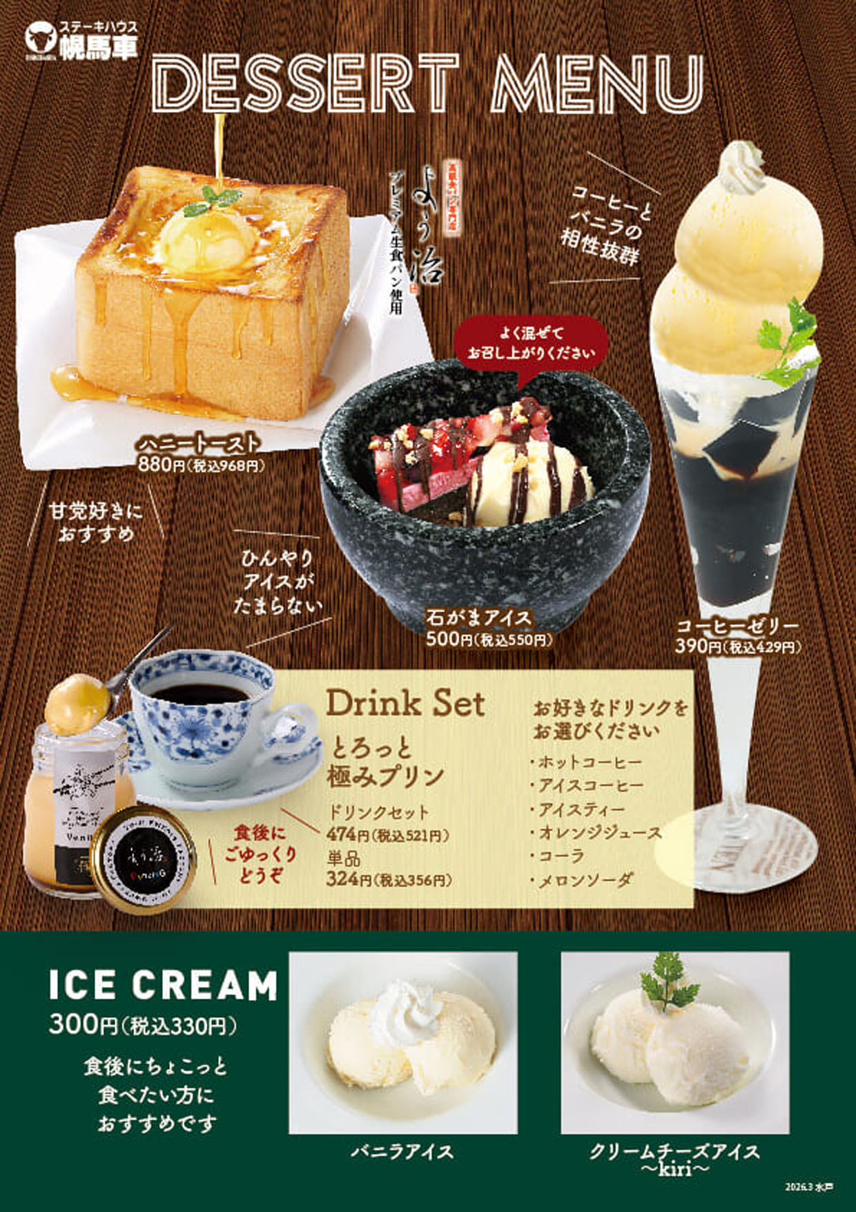 ステーキハウス 幌馬車のメニュー