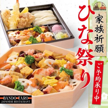 春の訪れを告げる「ひなチラシ」。桃の節句にちなみ、お子さまの健やかな成長と幸多き日々への願いを込め、彩り豊かな具材を丁寧に散りばめました。季節のごちそうでございます。 ご予約承ります。