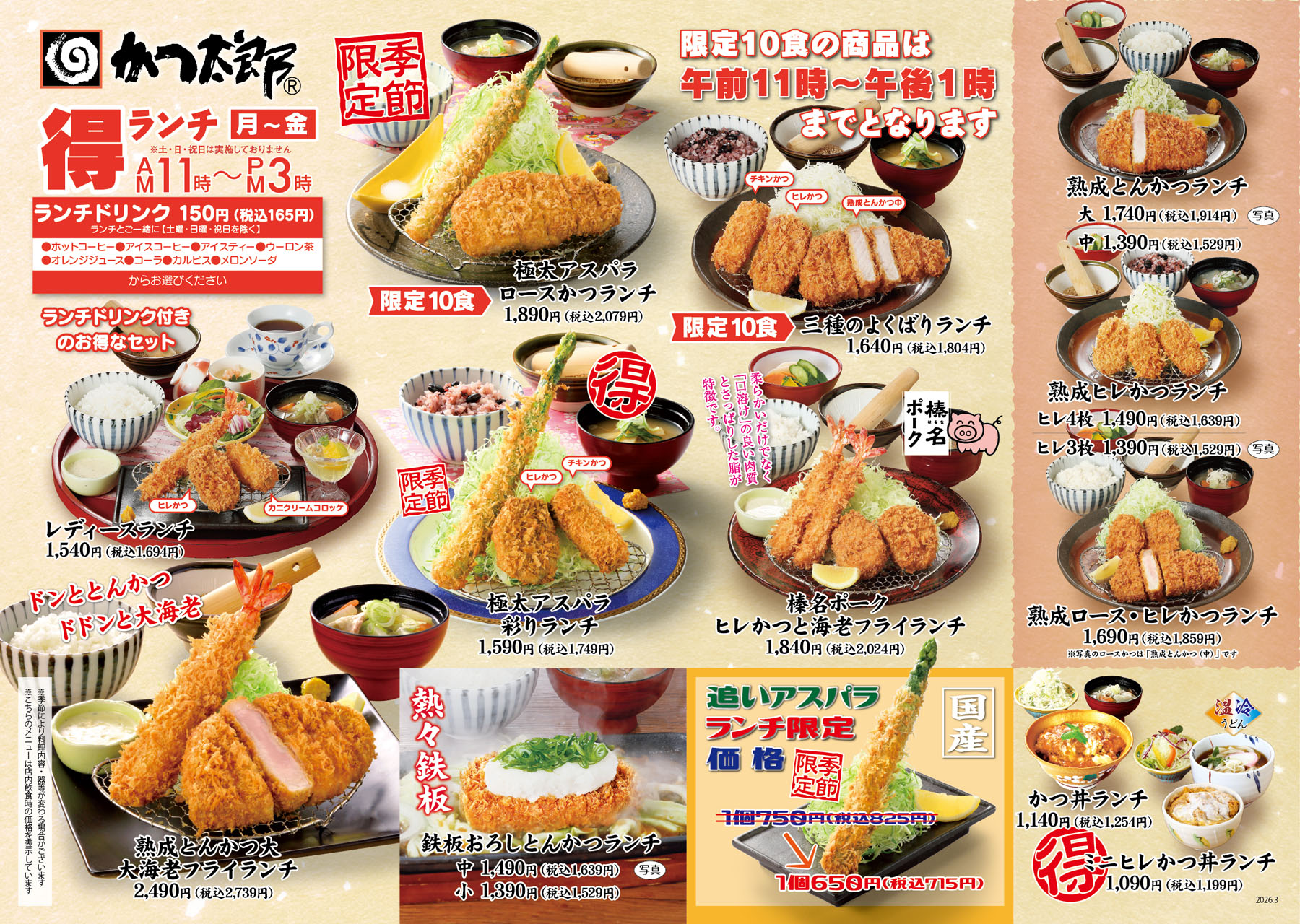 かつ太郎幸手店では令和8年3月25日(水)~4月12日(日)の幸手桜まつり期間中、一部メニューを変更し営業させて頂きます。