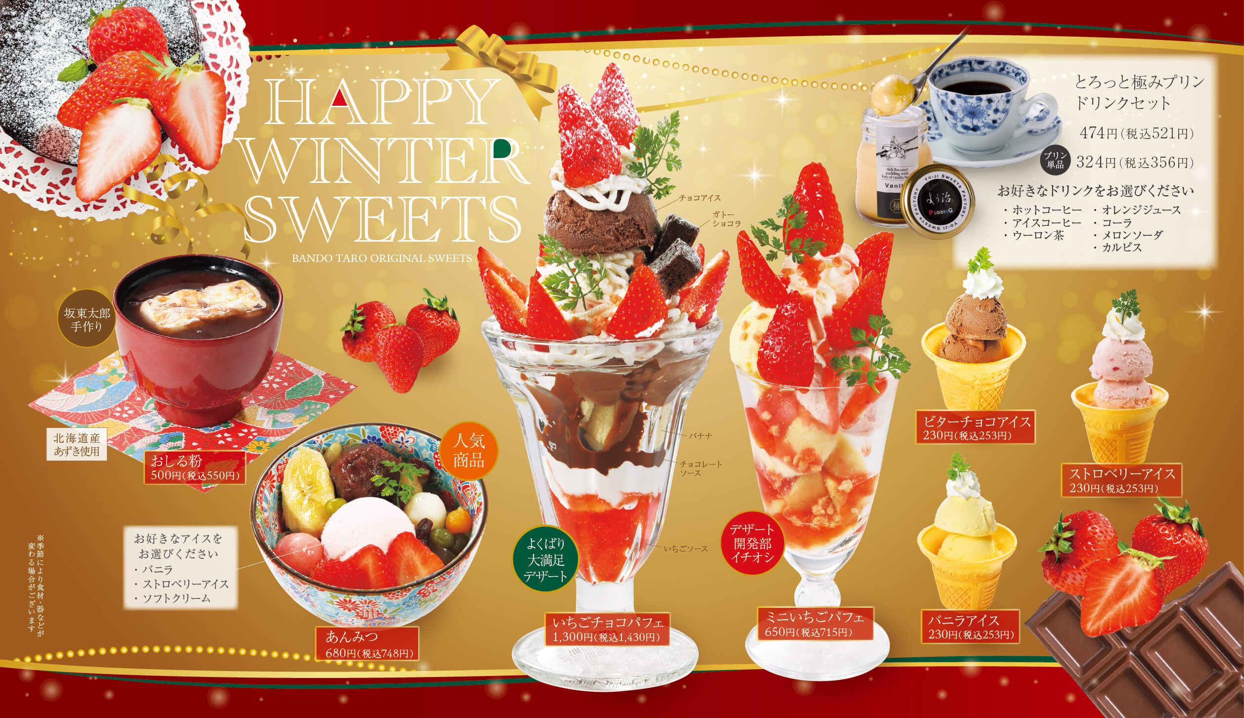 三和店の冬のデザートメニュー