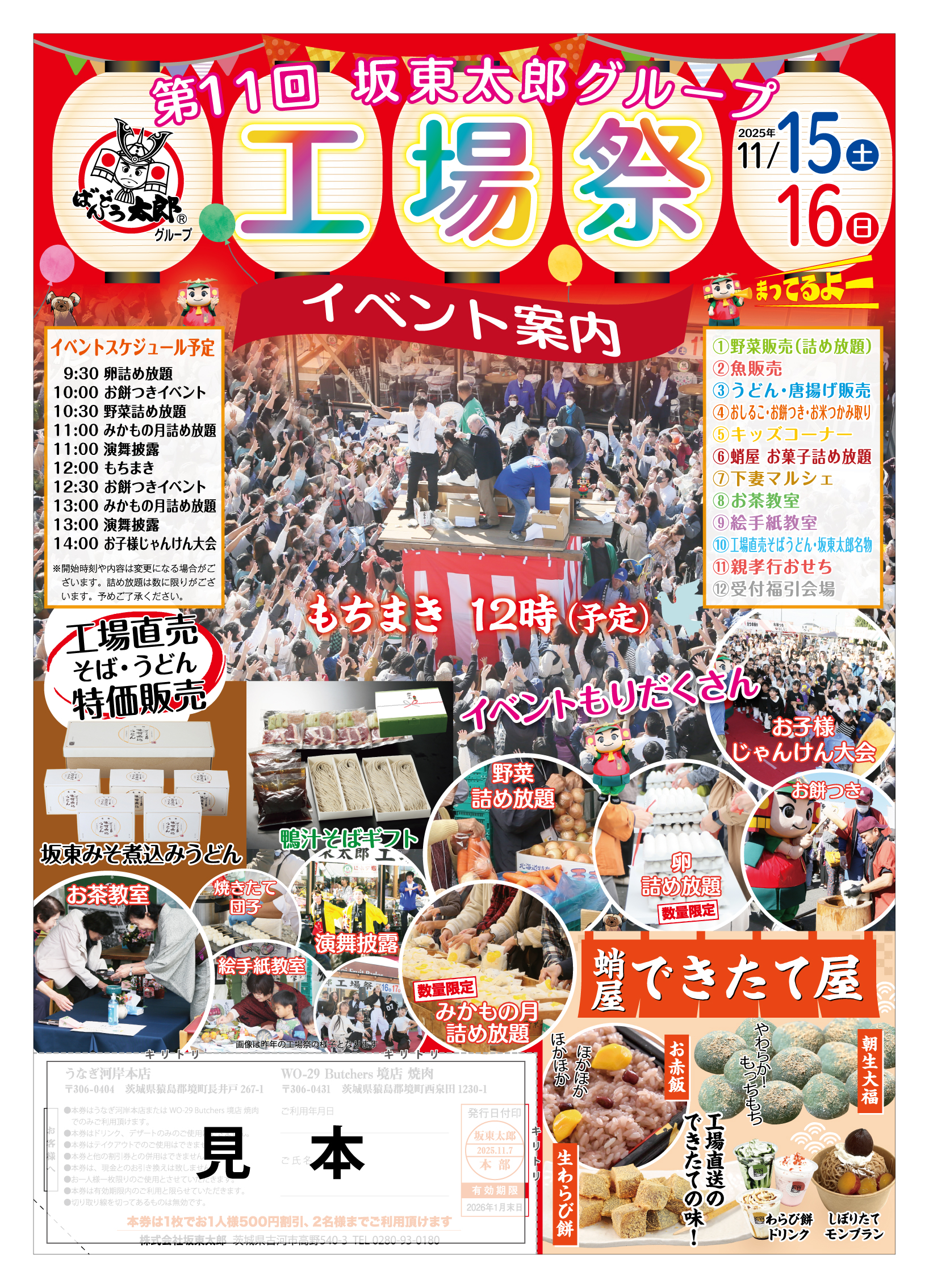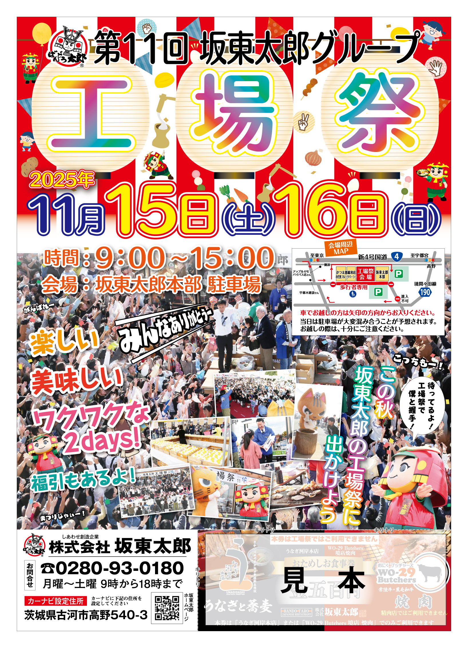 第11回坂東太郎グループの工場祭を11月15日(土)と11月16日(日)の2日間開催いたします!!